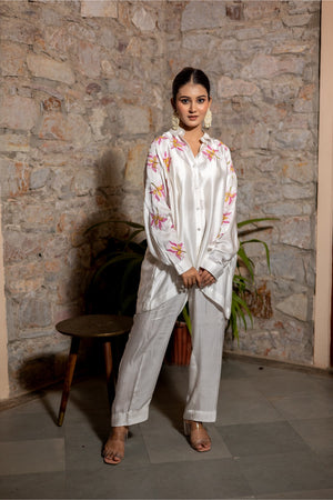 Lustrous modal satin co‑ord from the Kamlini line—liquid drape and elevated simplicity.