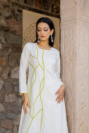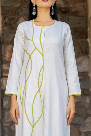 Aanchkala Asymmetrical Kurta – Off‑white Appliqué