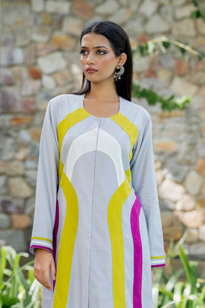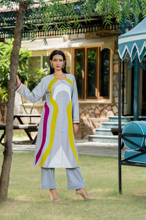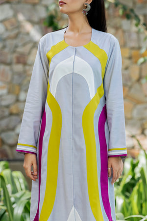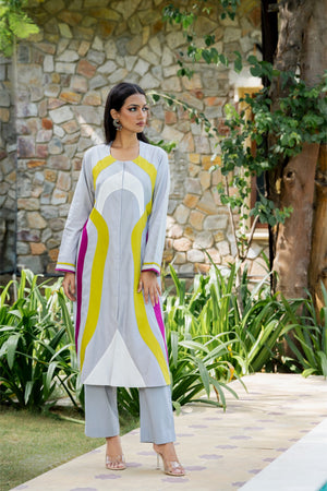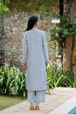 Aanchkala Grey Muslin Kurta – Geometric Appliqué