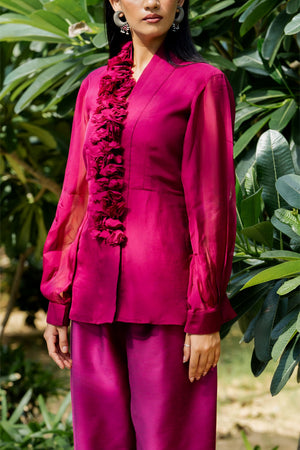 Bloom Co‑ord – Organza Shirt & Cotton‑Silk Pants