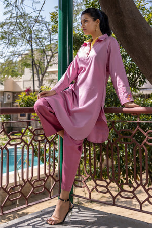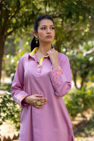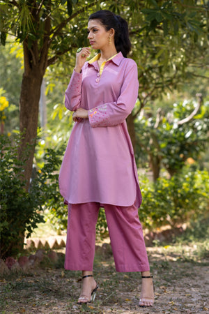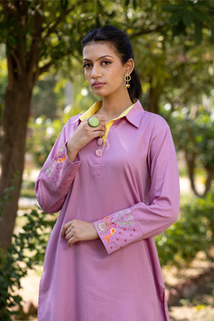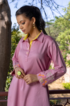 Glaze‑Cotton Kurta with Embroidered Cuffs
