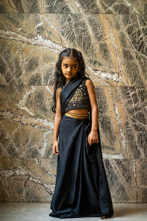 Sequinned Belt Pre‑stitched Saree Set