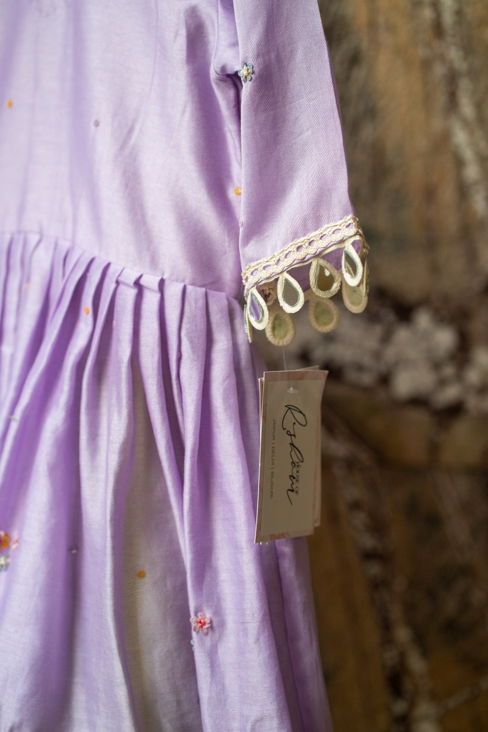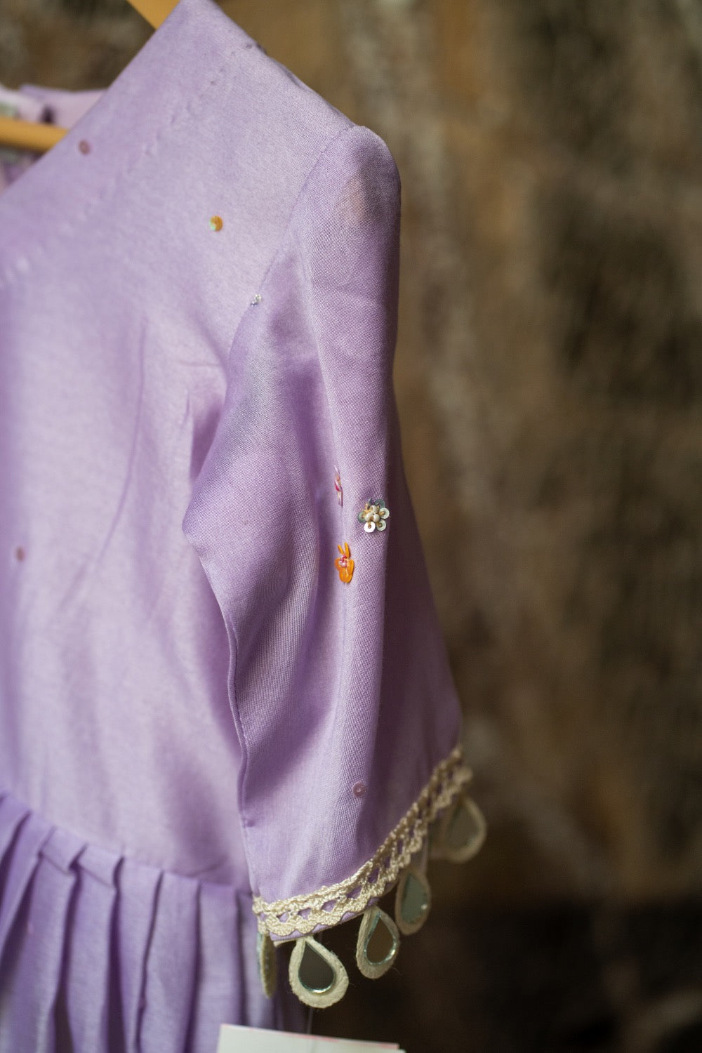 • Craft: Lilac peplum with sequins; lime silk pants