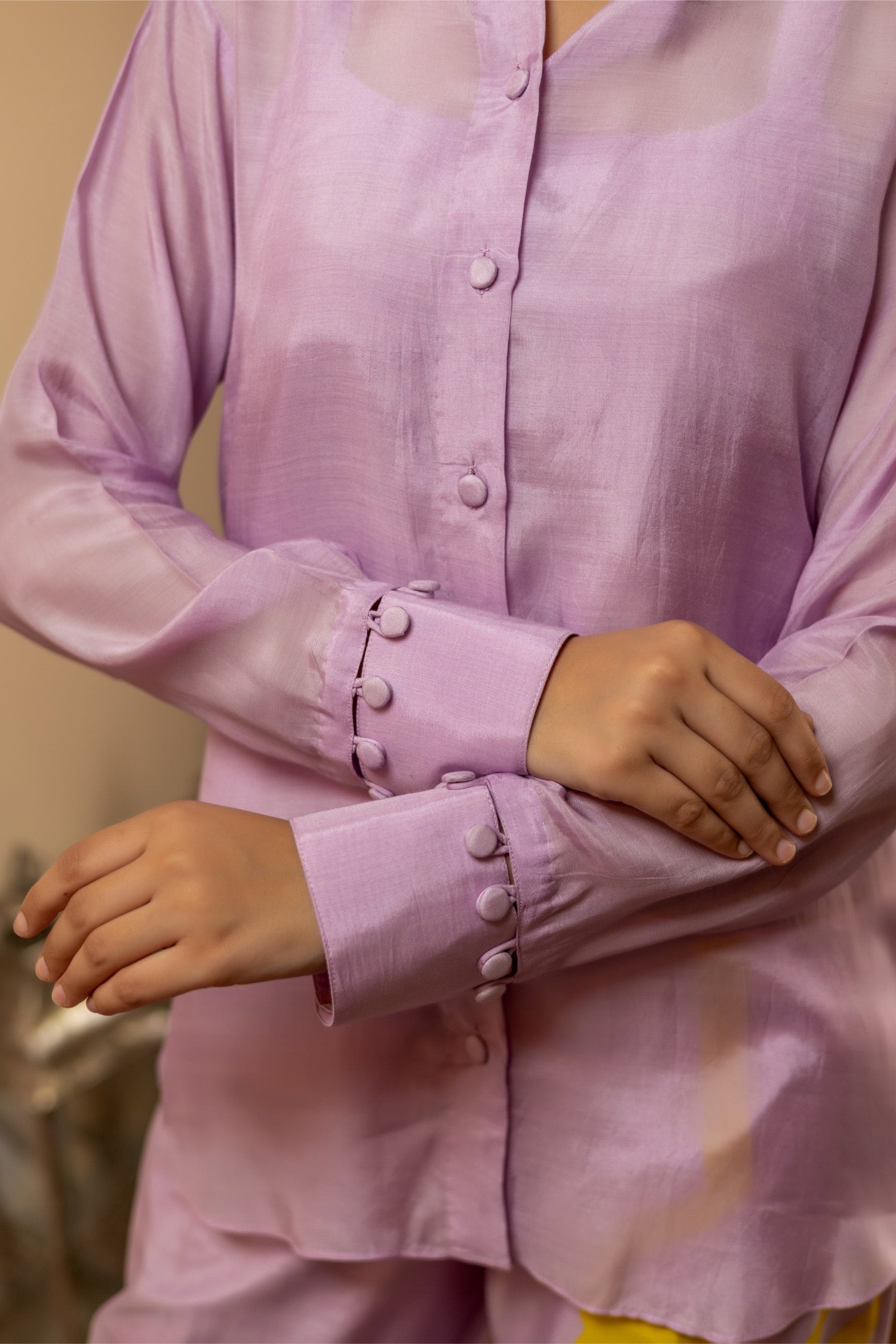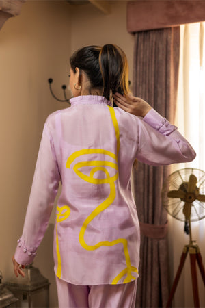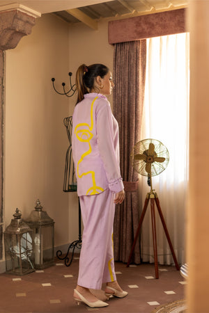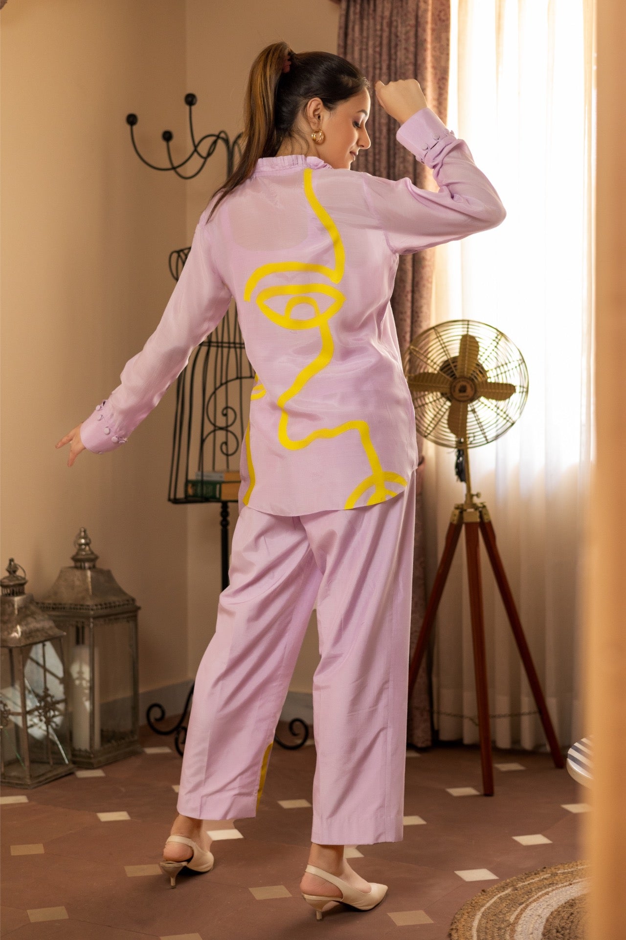Hand‑painted accents enliven this muslin co‑ord—art‑forward yet effortlessly wearable.