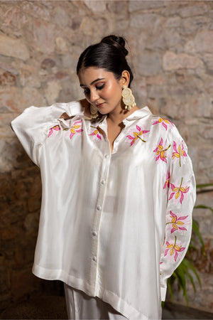 Lustrous modal satin co‑ord from the Kamlini line—liquid drape and elevated simplicity.