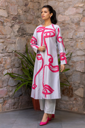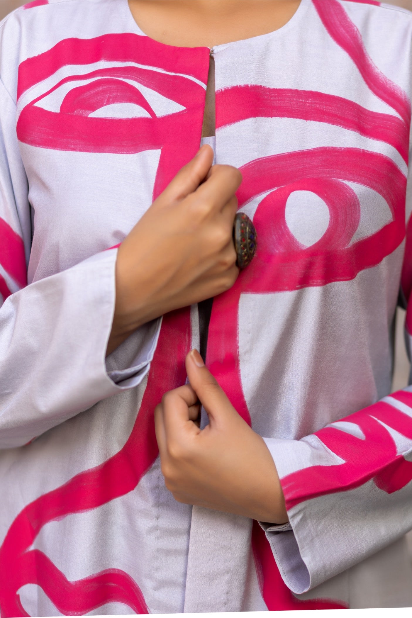 A sleek longline jacket in breathable muslin—versatile layering for modern wardrobes.