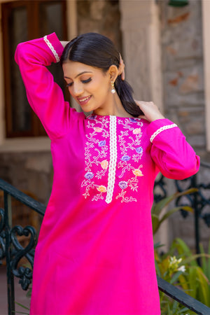 A structured glaze‑cotton kurta refined with tailored lines and smooth handfeel.