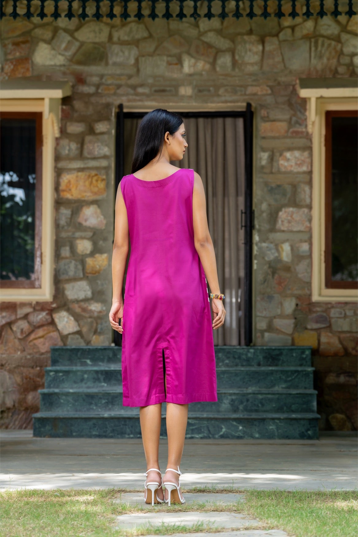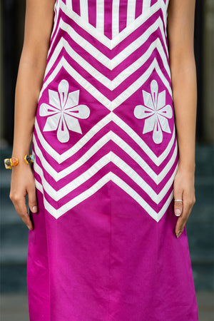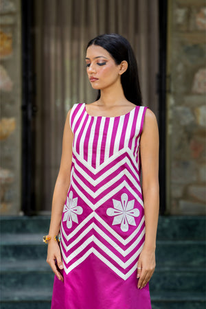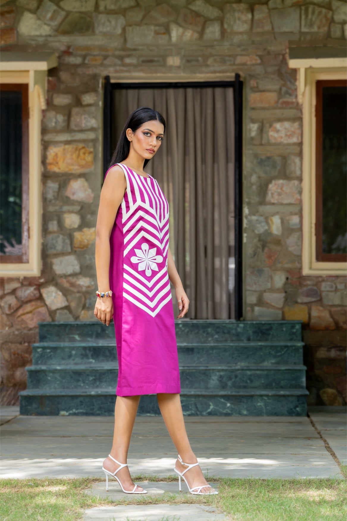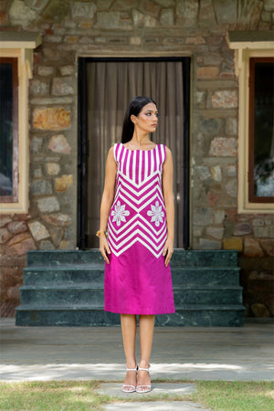 A blush pink dress in cotton silk detailed with artisanal appliqué—youthful ease meets elevated craft.