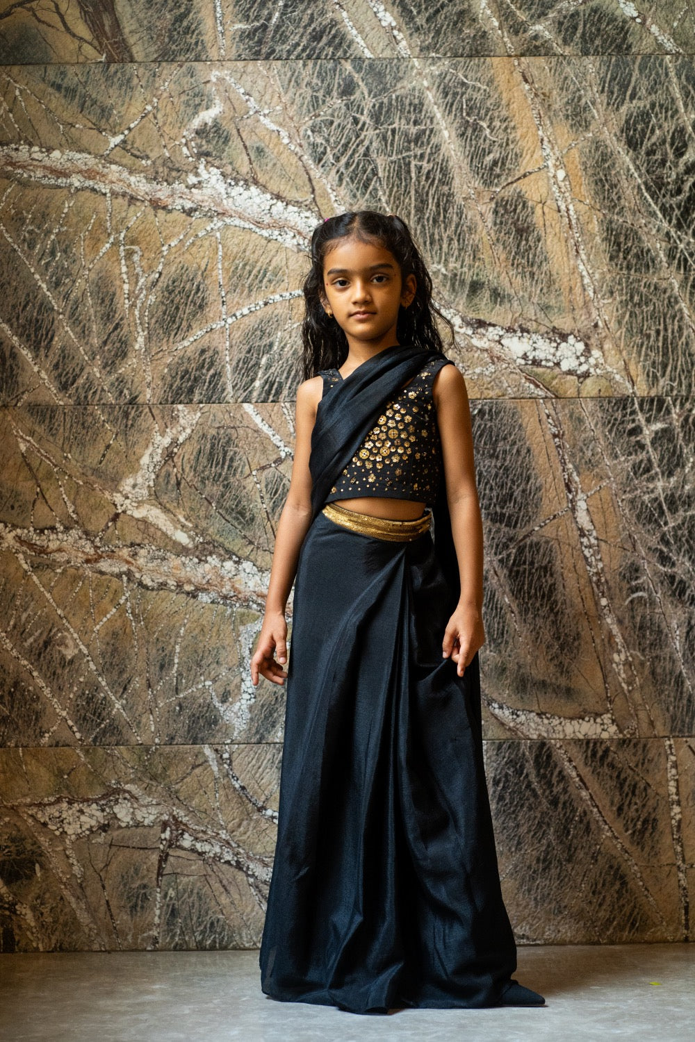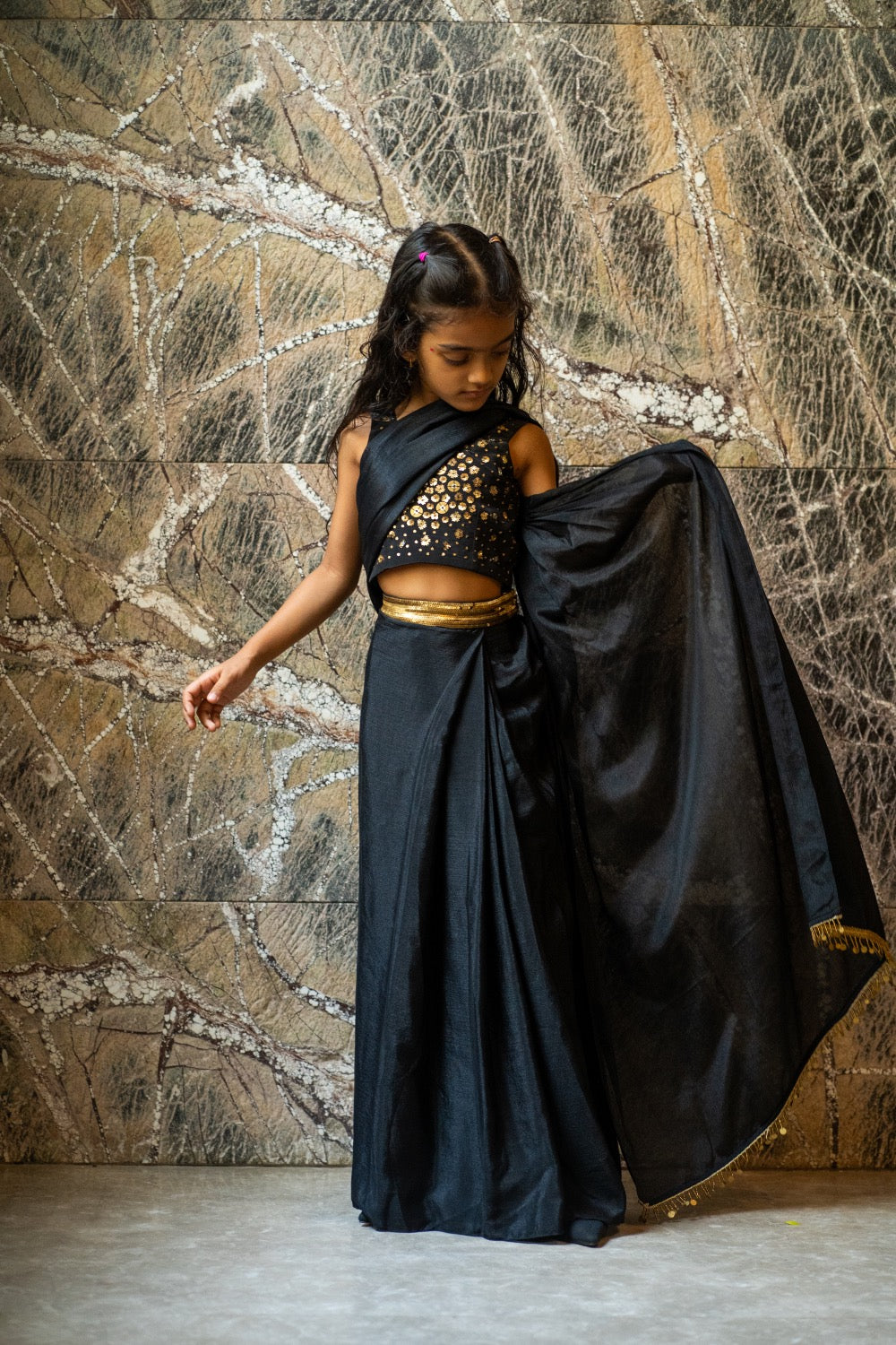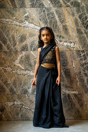 Sequinned Belt Pre‑stitched Saree Set